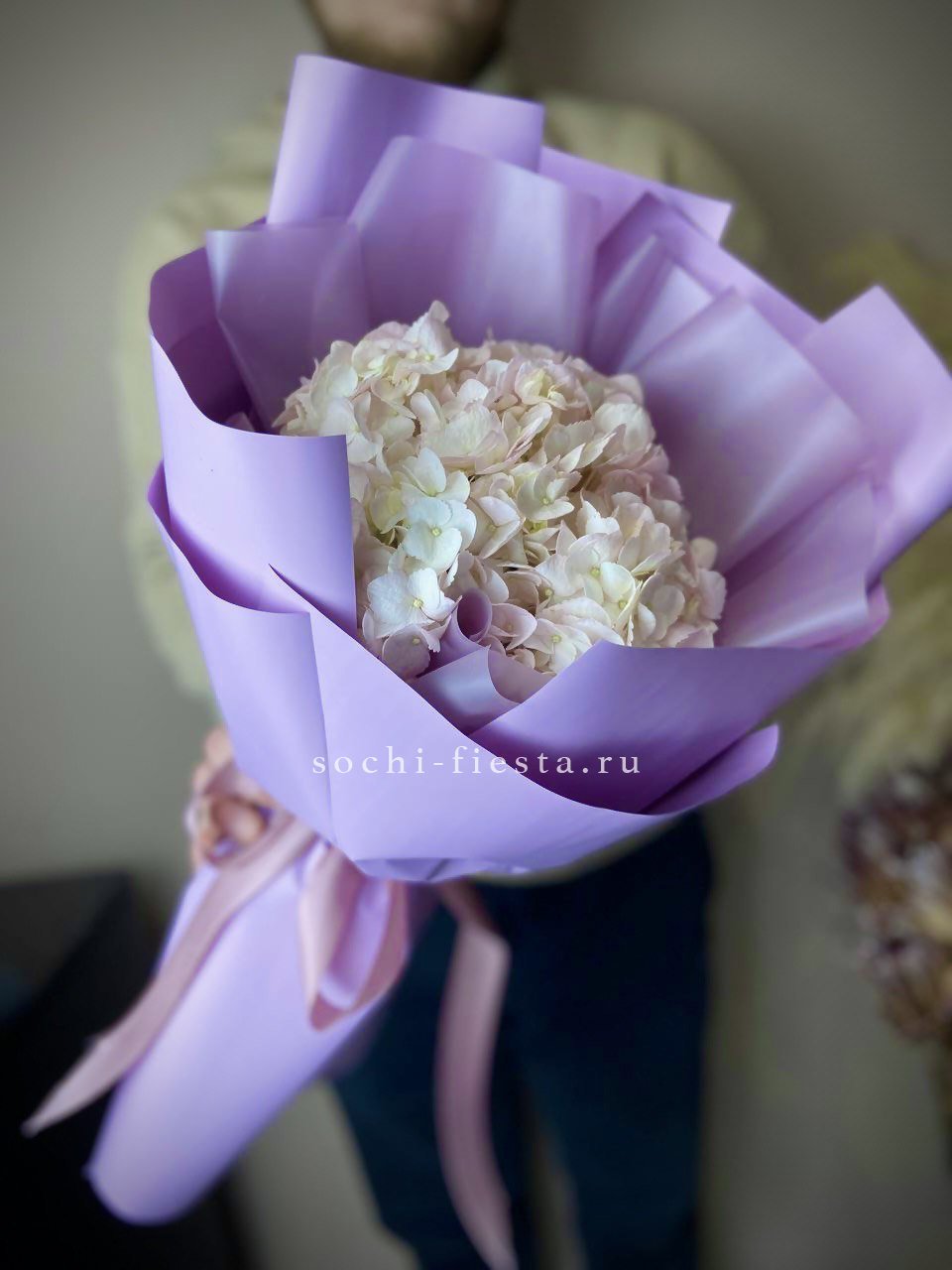гортензии в джутовом кашпо.