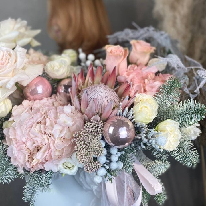 • Зимний гигант из роз — масштабный монобукет из долгостойких роз для зимних событий.