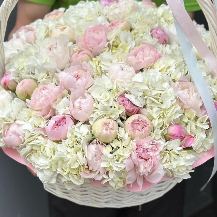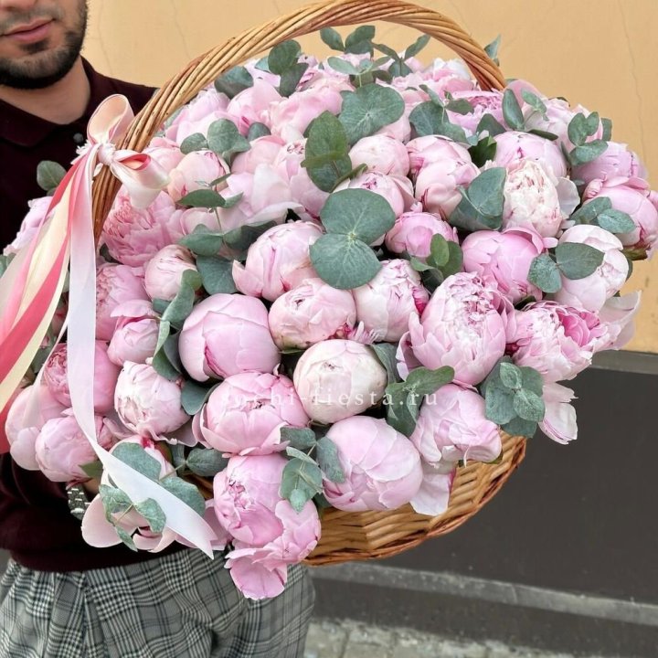 пионовый авторский букет гигант из 70 крупных пионов для майского юбилея или свадьбы корзина-гигант из сезонных цветов для торжественного открытия бизнеса или корпоративного поздравления