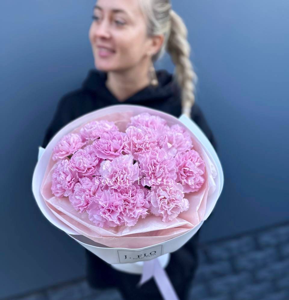 диантусы 15шт, тишью, упаковка, лента.