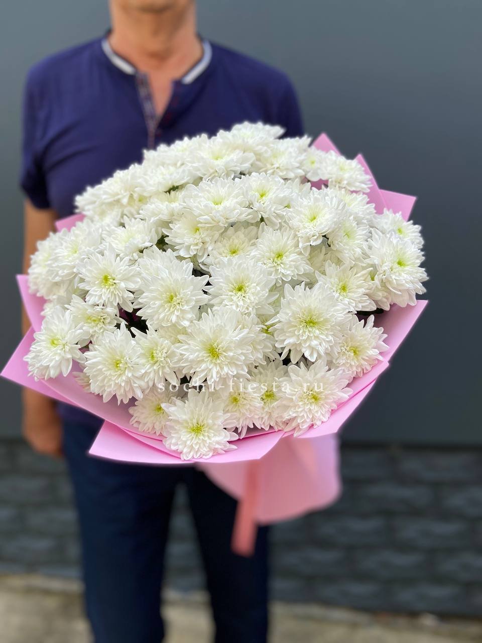 Fifteen веток кустовой хризантемы образуют пышное облако из множества мелких бутонов. Простая упаковка не отвлекает от густоты соцветий и их природной фактуры. Букет долго сохраняет свежесть и объём.