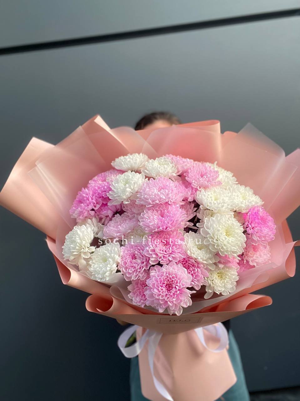 Букет бело-розовых хризантем