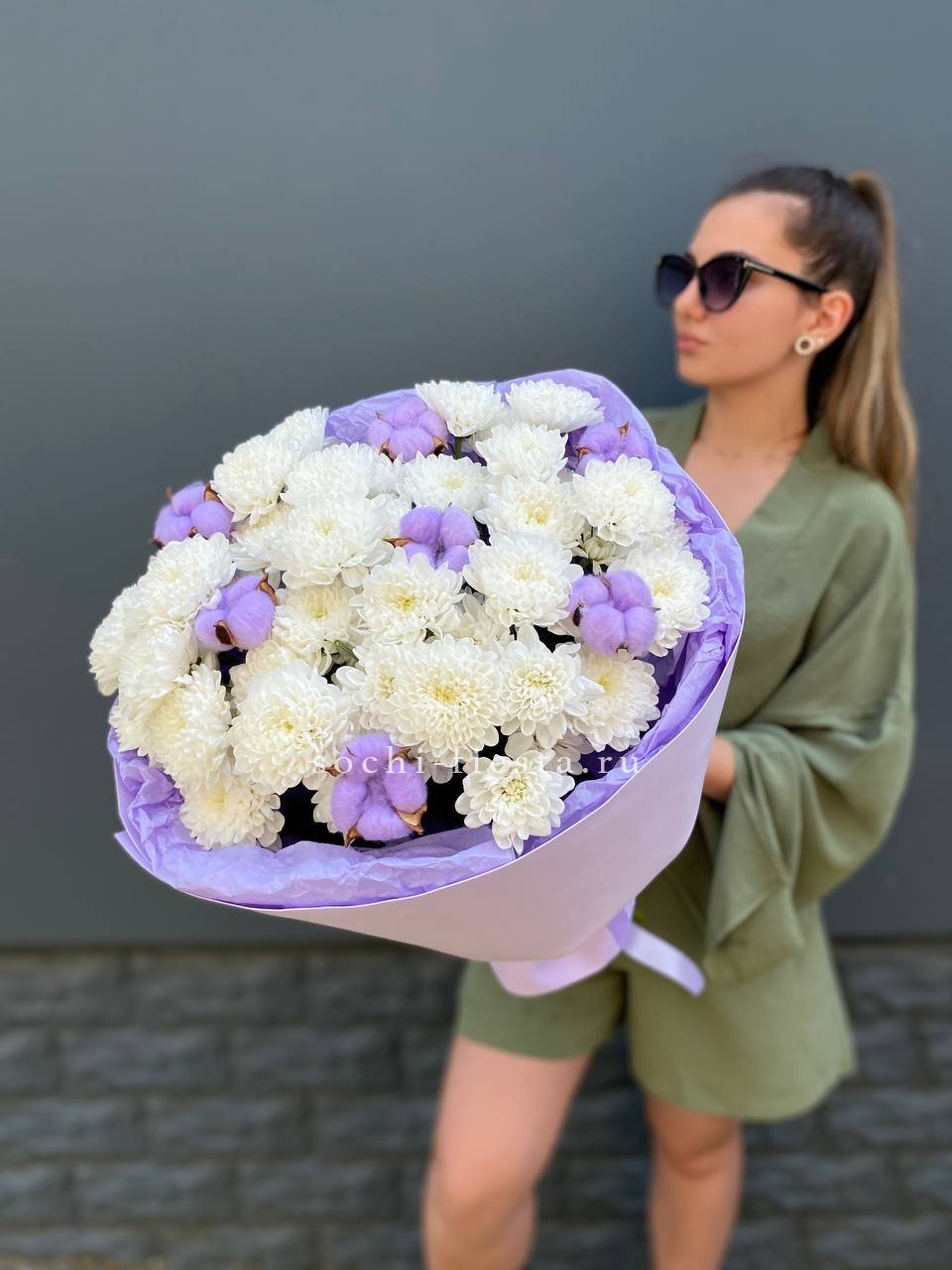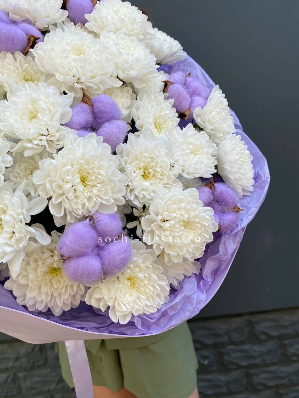 Для заказа товара " Букет хризантем и хлопка" с доставкой в Благовещенске нажмите в корзину