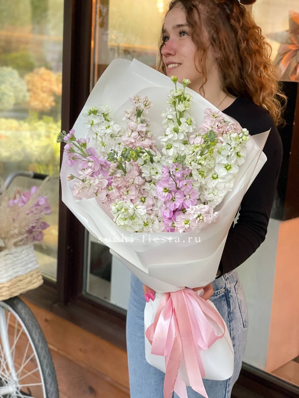 маттиола - 13 веток, лента, дизайнерская упаковка.