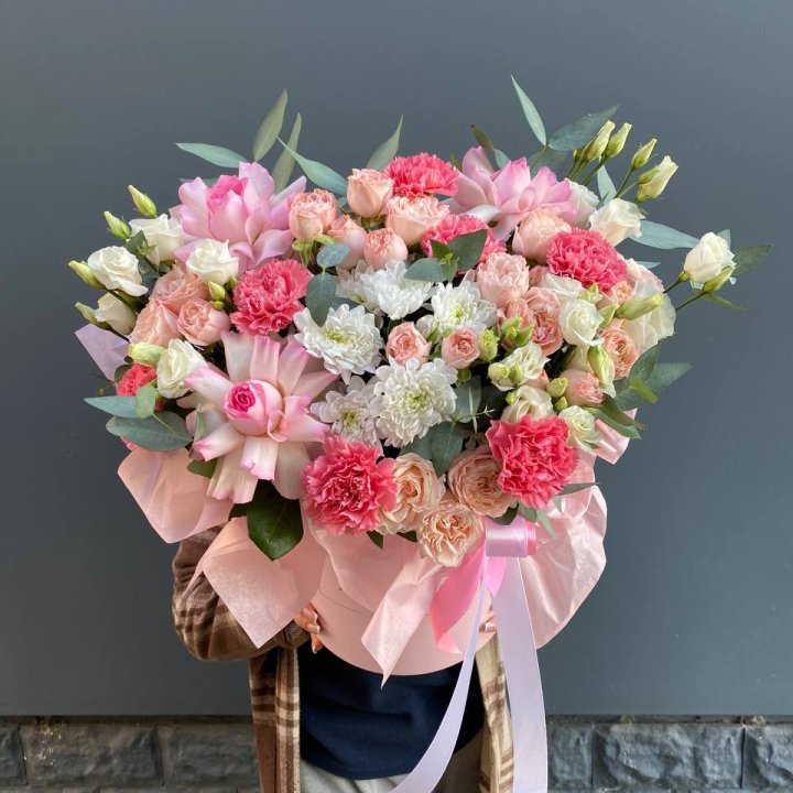 Шляпная коробка в студии Благовещенске закрепилась как практичный формат для корпоративных и семейных подарков. Композиция с флористической губкой, готовая к дарению без вазы. Удобно для офиса и для получателя, не требует ухода в первые 3-5 дней.