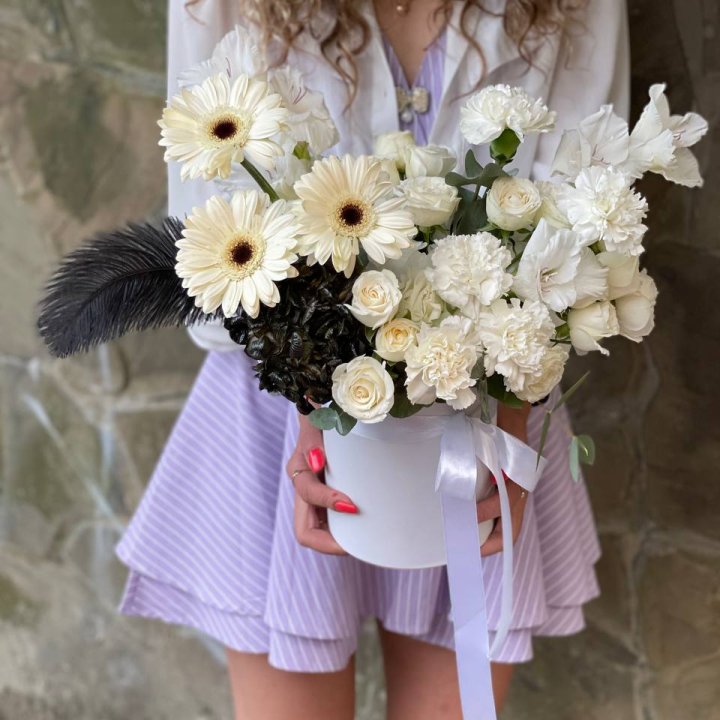 Шляпная коробка в студии Благовещенске закрепилась как практичный формат для корпоративных и семейных подарков. Композиция с флористической губкой, готовая к дарению без вазы. Удобно для офиса и для получателя, не требует ухода в первые 3-5 дней.