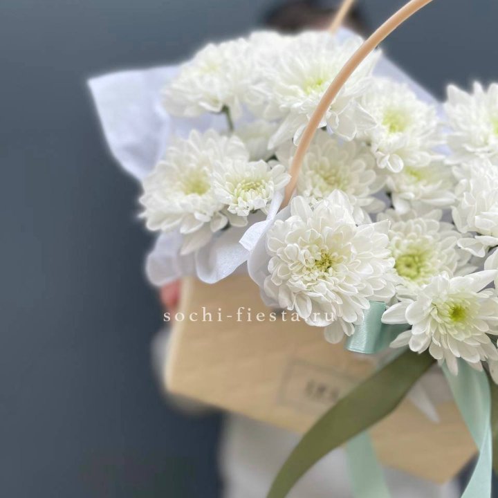 Коробка в студии Благовещенске — плотный картон с матовой поверхностью, иногда с тиснением логотипа. Внутри — флористическая губка (оазис), предварительно пропитанная водой. Сверху — атласная или шёлковая лента, декоративная тесьма, иногда фирменная открытка.