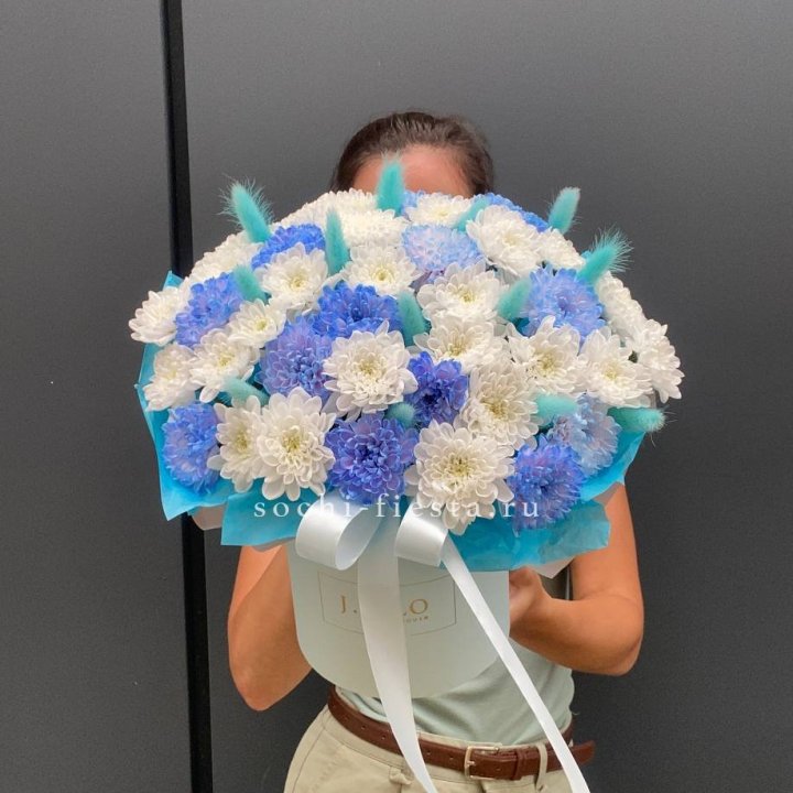 шляпная коробка с розами и хризантемами для студии флористики в Благовещенске