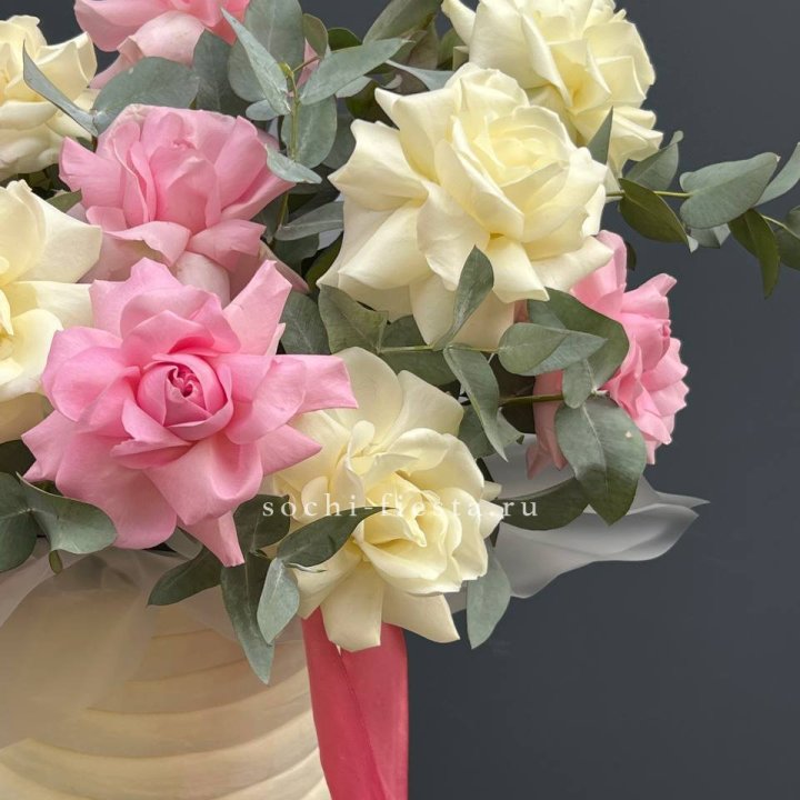 шляпная коробка с розами и хризантемами для студии флористики в Благовещенске
