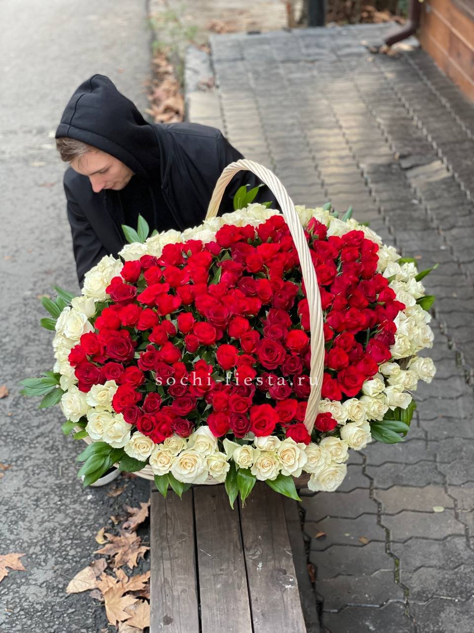 Букет сохраняет свежесть и форму благодаря устойчивой основе корзины.