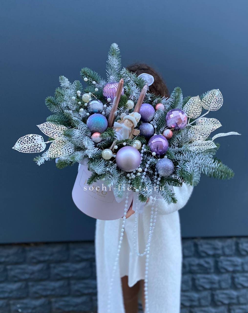 нобилис, цилиндр, оазис, свечи, новогодние игрушки, декор ВНИМАНИЕ! Готовая композиция (декор) может иметь незначительные внешние отличия от примера на фотографии.