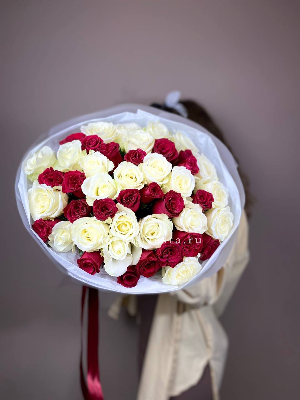 Для заказа товара "Букет из красных белых 45 роз" с доставкой в Благовещенске нажмите в корзину
