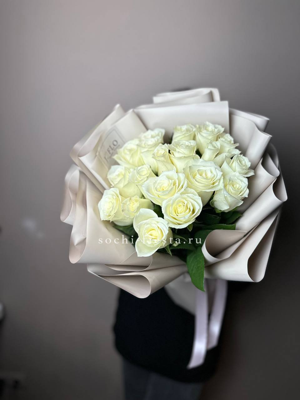 21 белая роза, лента, упаковка на выбор.