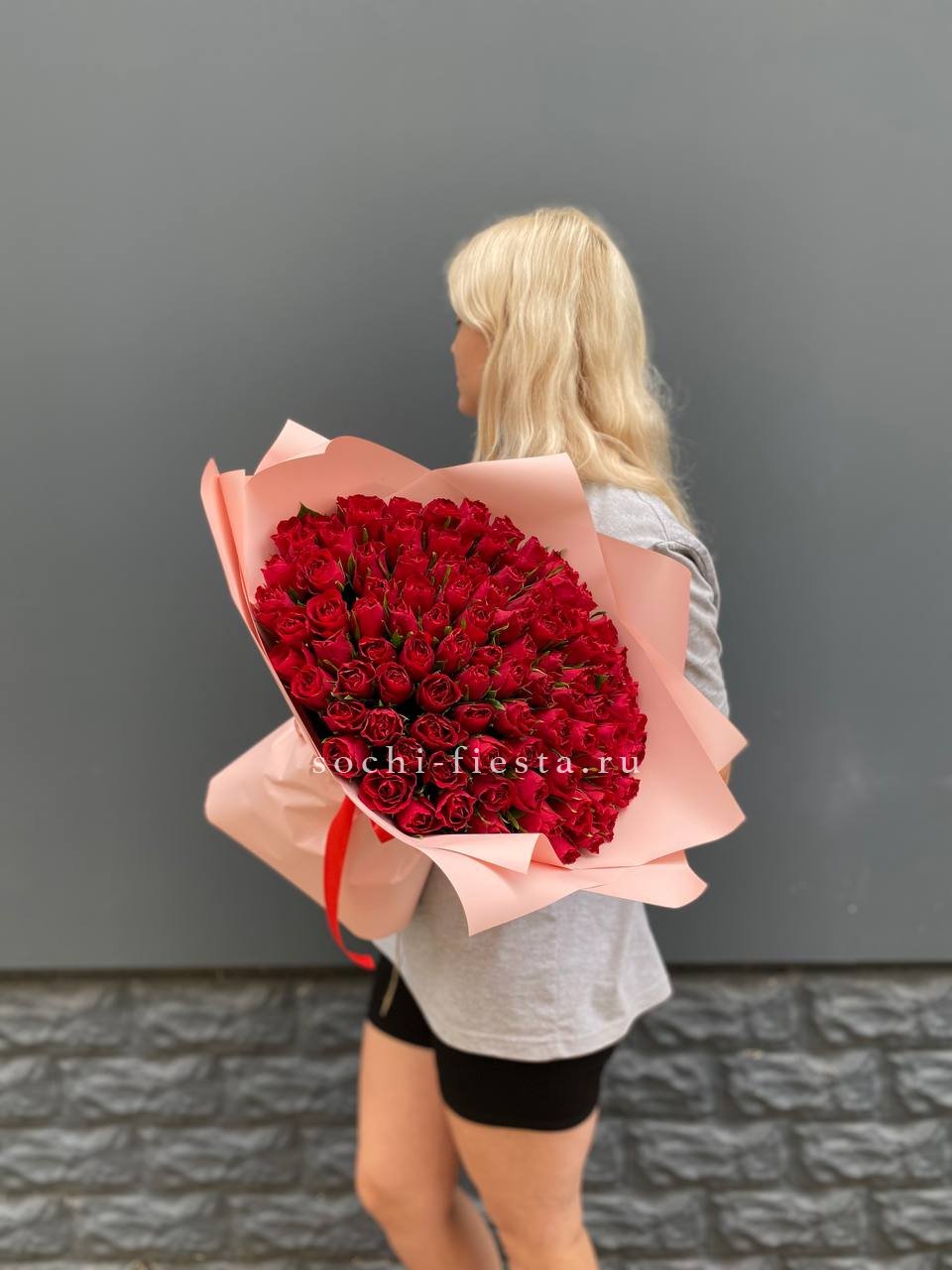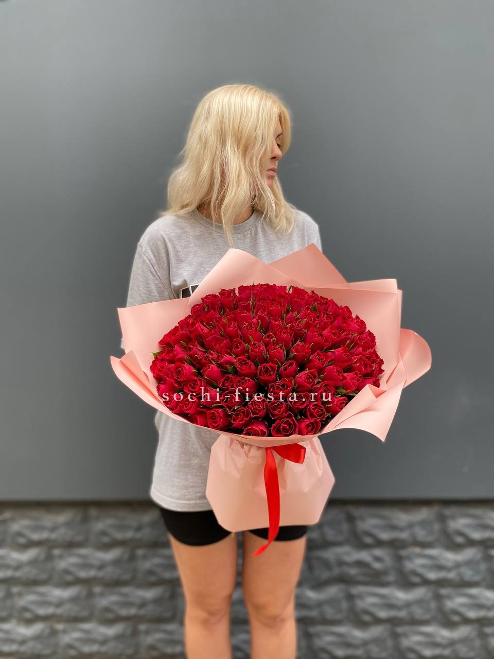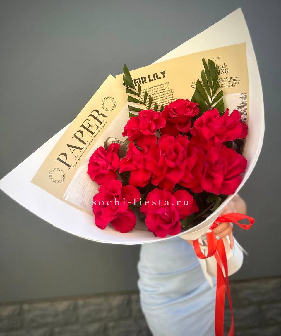 Red Naomi в графичной упаковке BLVCK — это игра между классическим красным и современной подачей. Плотные бутоны раскрываются медленно, сохраняя форму и насыщенность цвета.