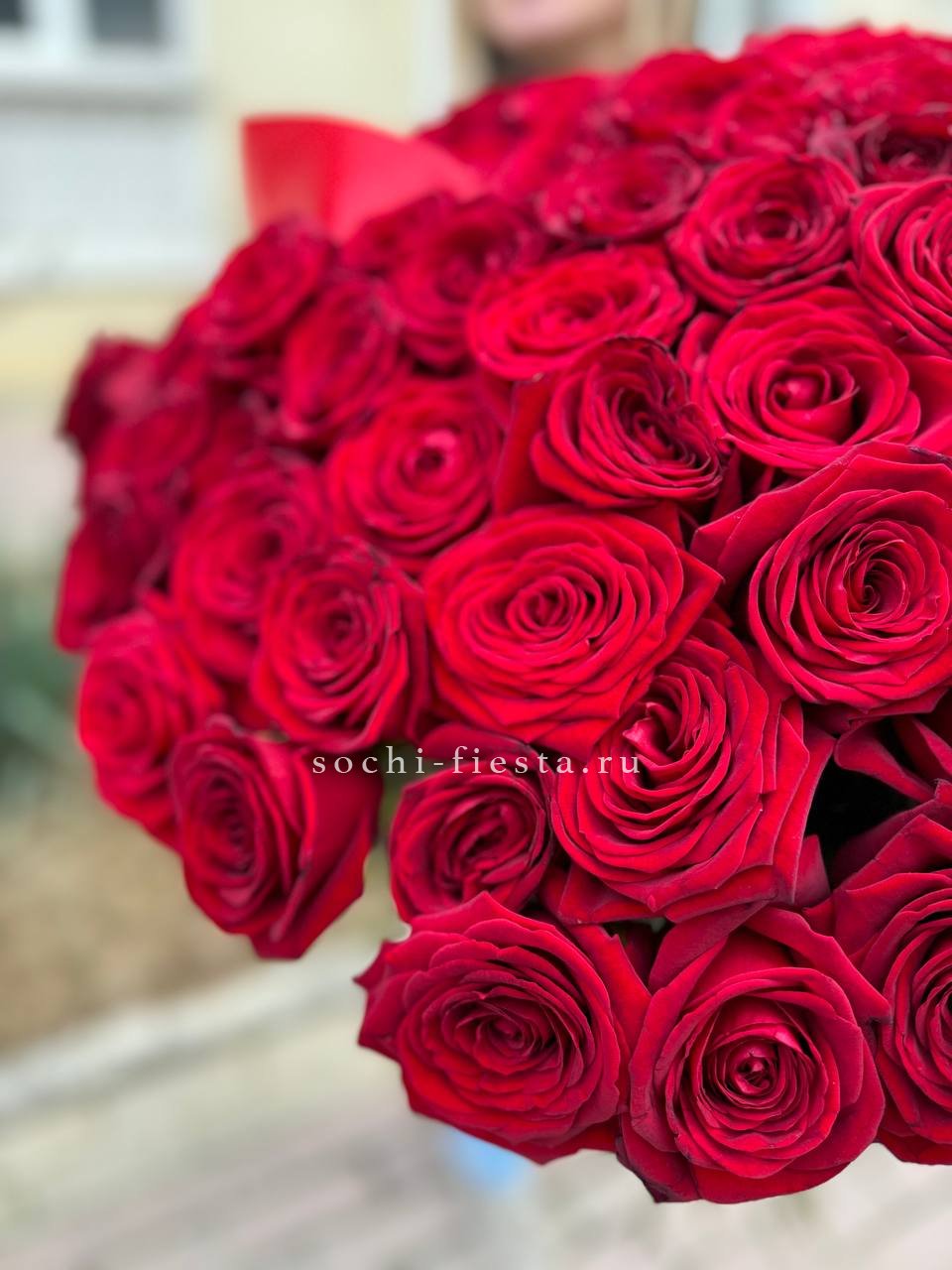 Сто одна голландская роза сортов Фридом или Эксплорер впечатляет длиной стеблей и крупными бутонами. Глубокий винный оттенок и безупречная геометрия каждого цветка. Масштаб, который чувствуется.