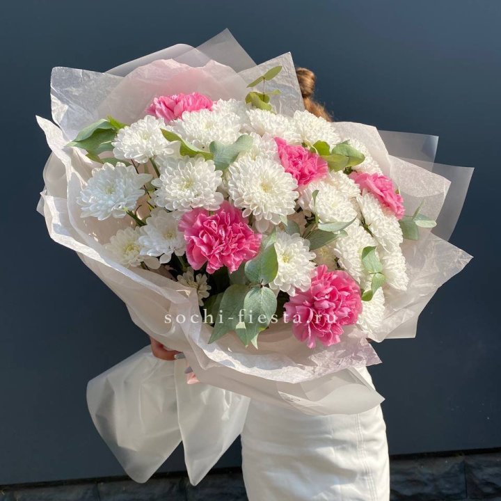 авторский сборный букет для регионального города с сезонными цветами и зеленью