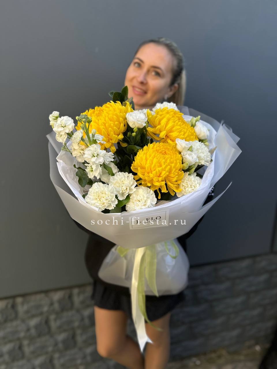 Маттиола и хризантема выстраивают плавную линию букета, где каждый бутон находит свое место. Autumn раскрывается теплыми оттенками и мягкой фактурой лепестков.